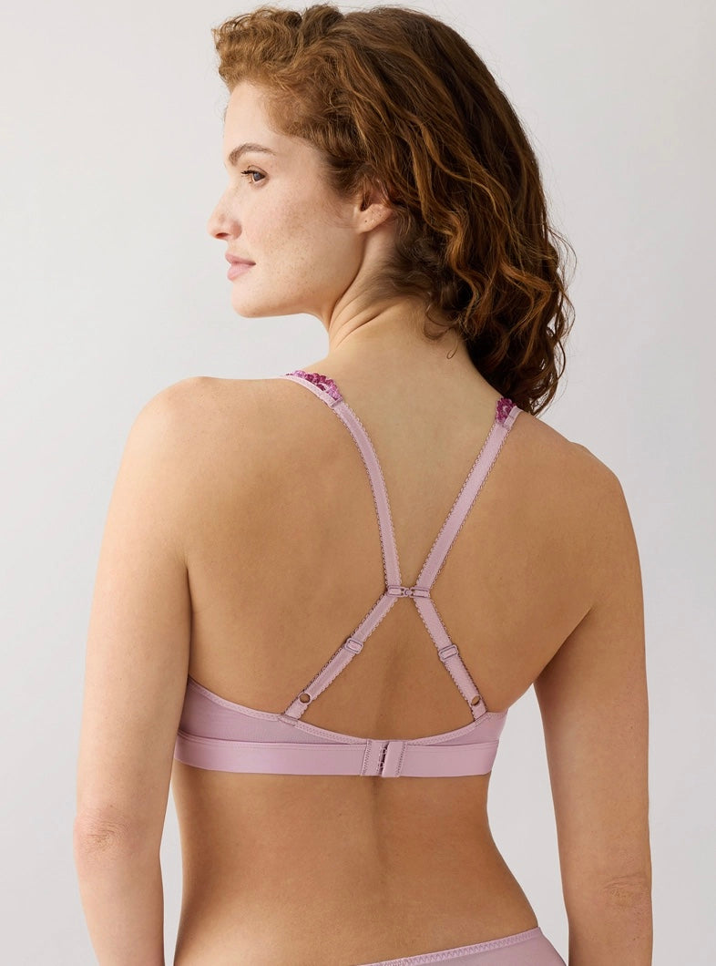 The soft and sweet Embrace Lace Wire-Free Bra combines the best of all worlds. It's ultra-comfortable, supportive and converts for versatility. Flattering and comfortable! Perfect for lounging, running errands or as a feminine, sexy set.