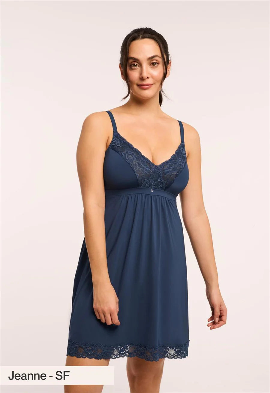 • Flattering A-line chemise in ultra-soft microfiber and lace