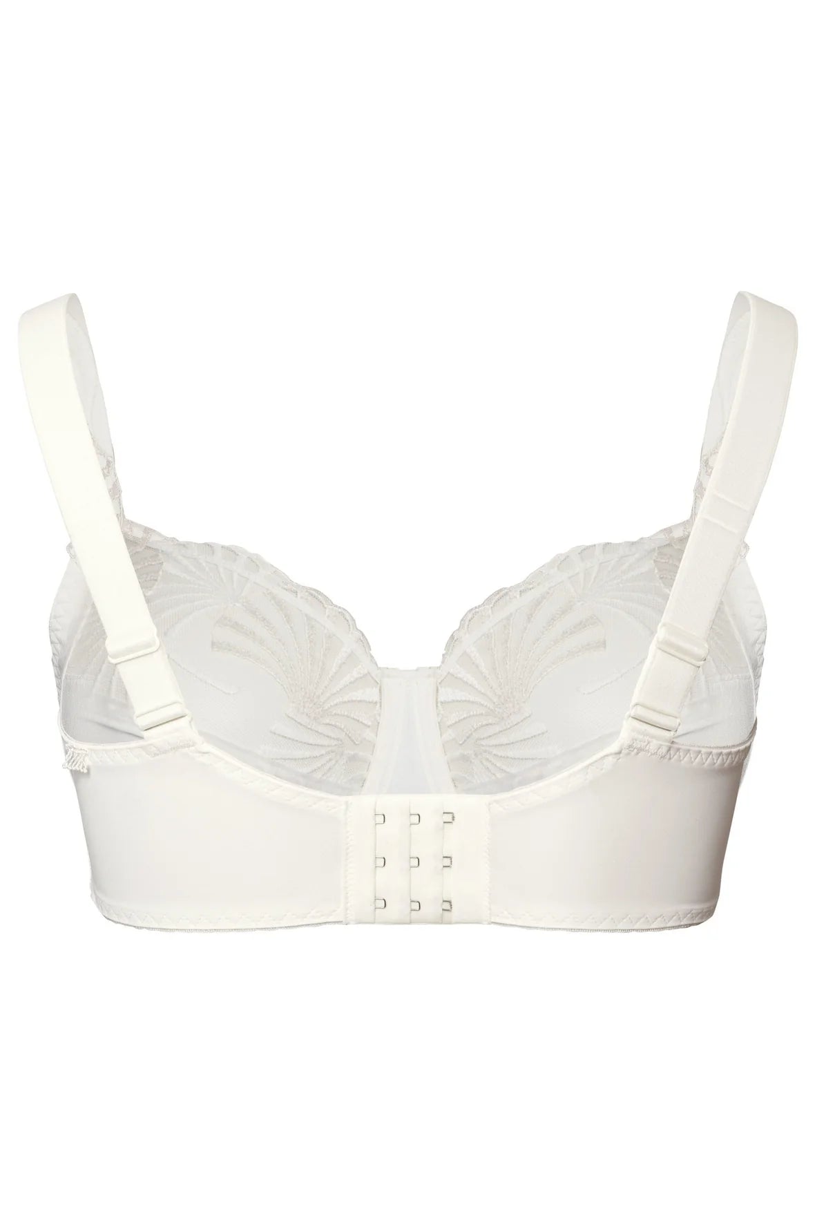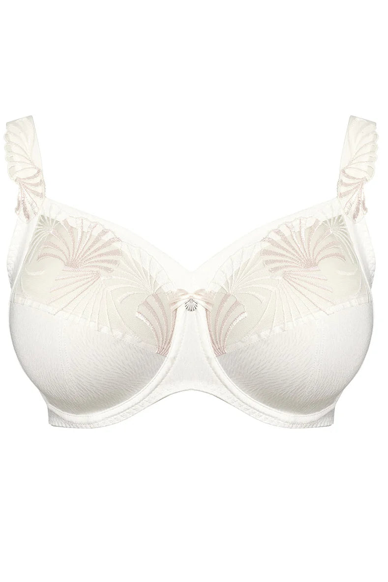 Underwired bra designed for fuller-busted women, combining elegance with exceptional support. Featuring four-section cups with integrated side panels, it offers enhanced uplift and a flattering shape up to an N cup. An additional support band along the neckline ensures a secure fit, while the double-layered back reduces shoulder strap pressure, promoting all-day comfort.